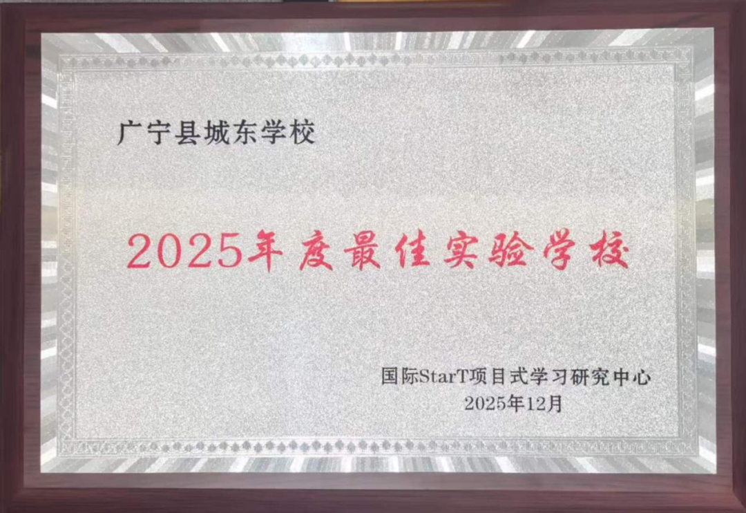 广宁县城东学校获评“2025年度最佳实验学校”。这一荣誉是对学校持续推进项目式学习探索、深化教学改革、着力培养学生创新精神与实践能力的充分肯定,更是全校师生团结拼搏、锐意进取的生动体现。